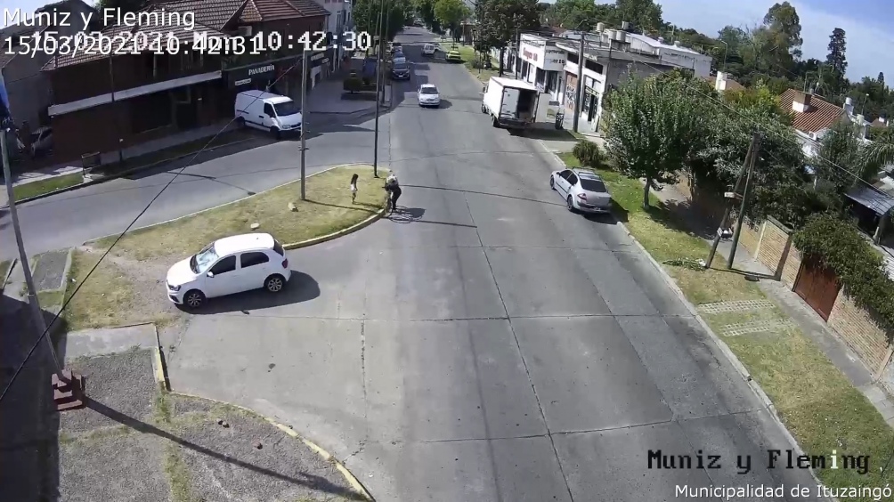 Luego del hallazgo de la menor de edad y de la detención del sospechoso, la Municipalidad de Luján difundió un video en el que se los observó a ambos montados en la bicicleta en el cruce de la calle Buenos Aires y Colectora de Acceso Oeste a las 7.59 de la mañana, es decir minutos antes de que sean localizados por la policía.