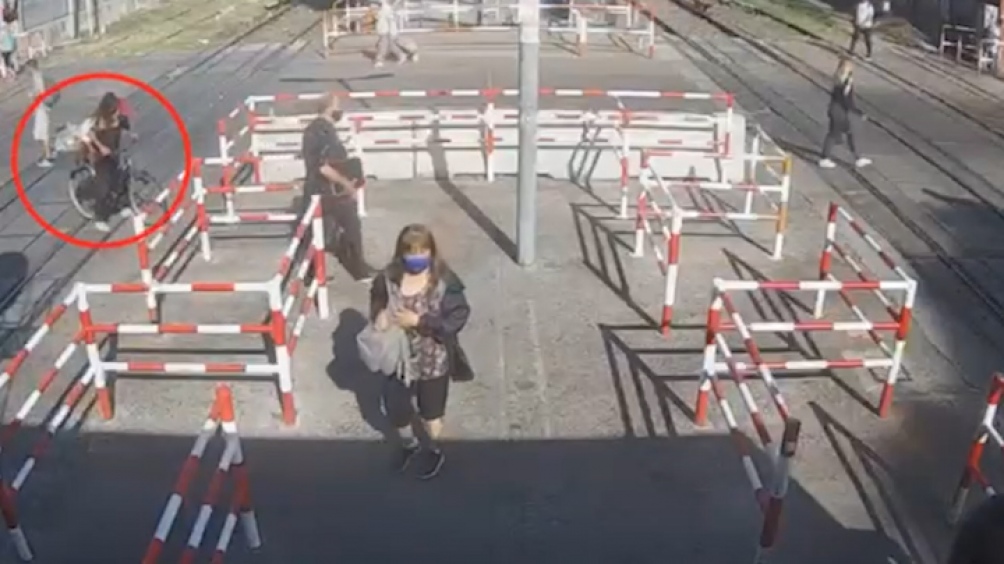 -12.02: Una cámara municipal los tomó en Victorica y Colectora de Acceso Oeste cruzando para la ruta 25.