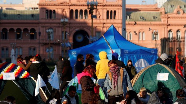 Una imagen del acampe en Plaza de Mayo. Foto: AFP/Juan Mabromata.