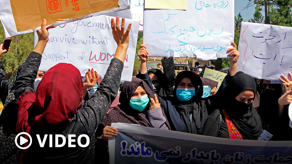 Decenas de mujeres protestaron en Afganistán para reclamar por su derecho a trabajar bajo el nuevo régimen establecido por el movimiento talibán.