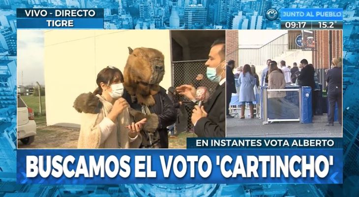 Sin embargo, esta mañana un nuevo condimento se sumó a las Primarias Abiertas Simultáneas y Obligatorias (PASO): un hombre disfrazado de carpincho se acercó a votar a una escuela de Nordelta, localidad urbana en el Partido de Tigre, provincia de Buenos Aires.
