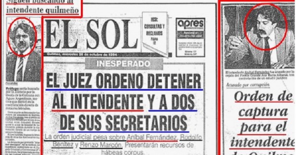 Tras varias denuncias por corrupción durante su administración como intendente de Quilmes, Aníbal Fernández se profugó de la Justicia un 26 de octubre de 1994 en el baúl de su abogado, Martín Ordoqui, quien años después fue suspendido como camarista luego de ser imputado por tráfico de influencias.