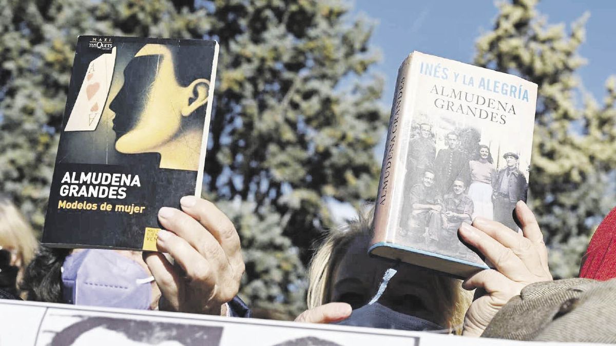 Cerca de 2.000 personas despidieron ayer, con un libro en mano, a la escritora Almudena Grandes, fallecida el sábado, en un funeral celebrado en el Cementerio Civil de Madrid con la asistencia del primer ministro, Pedro Sánchez. El periodista Ramón Lobo había pedido durante el fin de semana que se despidiera a Grandes con libros, a semejanza de la despedida a José Saramago en Portugal. Los asistentes al entierro de la escritora, fallecida a los 61 años de un cáncer, llevaron también claveles rojos, banderas republicanas y del Atlético de Madrid, del que era seguidora.