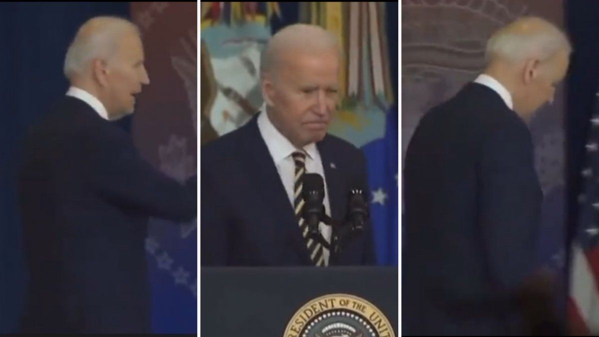 Tras despedirse de los veteranos, a quienes consideró “la columna vertebral de Estados Unidos”, el jefe de Estado no supo dónde estaba la escalera de salida del escenario.