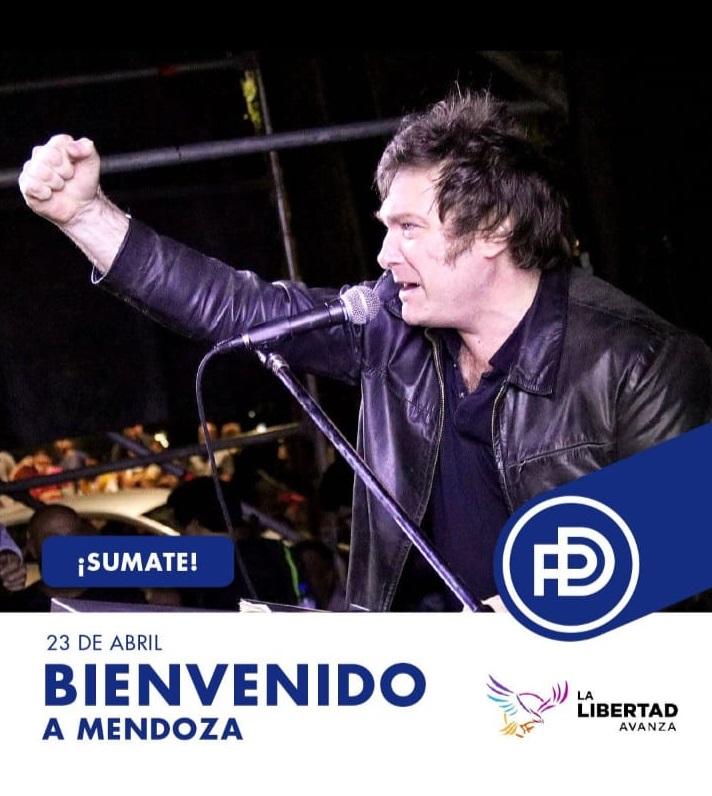 Javier Milei recalará en Mendoza el próximo 23 de abril a efectos de brindar una clase de Economía. Según informa el Partido Demócrata, la entrada será libre y gratuita.