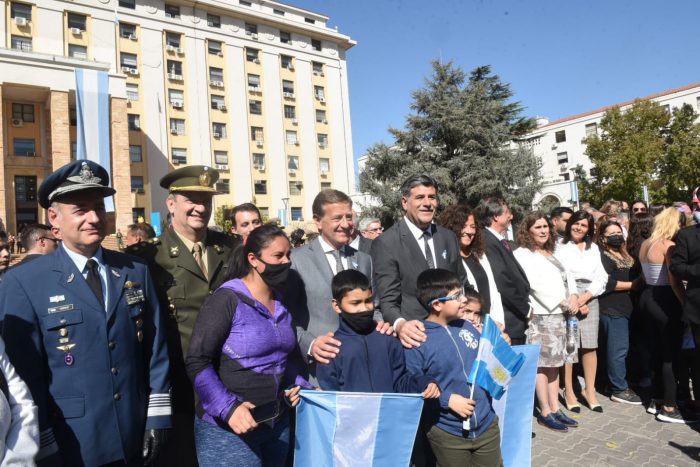 Y dirigiéndose a los veteranos, expresó: “En el rostro de ustedes, en sus dolores y alegrías, en la vida de las familias del combatiente, está el espejo que nos muestra con realismo todas las caras de los argentinos. Desde el reflejo agudo que nos debe avergonzar por la demora en la reparación de sus legítimos derechos como veteranos, hasta el que nos alienta y nos esperanza porque expresa la dignidad en la lucha y la grandeza del valor. Por eso, en nombre de las mendocinas y mendocinos, quiero decirles perdón y gracias. Perdón por las injusticias de la memoria frente a la inmensidad de la entrega de ustedes y gracias, muchas gracias por seguir enseñándonos que, a pesar de todo, son los valores humanos los que abren la puerta grande para encontrarnos, unirnos y enaltecer la historia de una nación”.