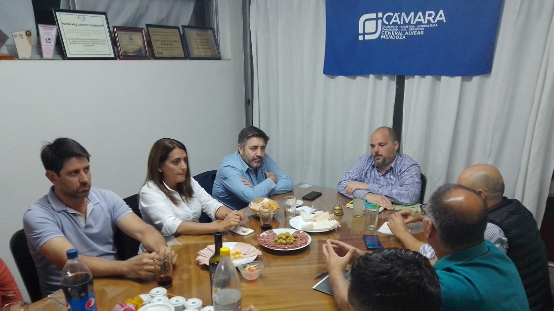 Por último, visitaron la Cámara de Comercio de General Alvear, donde se reunieron con empresarios y referentes de la zona. Allí analizaron temas como el desarrollo del turismo enológico y la ganadería.