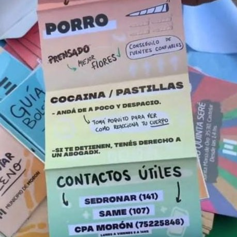 “Andá de a poco y despacio” , señala el folleto que induce al consumo. Es el “mejor” camino para que el que se inicia avance en la adicción.