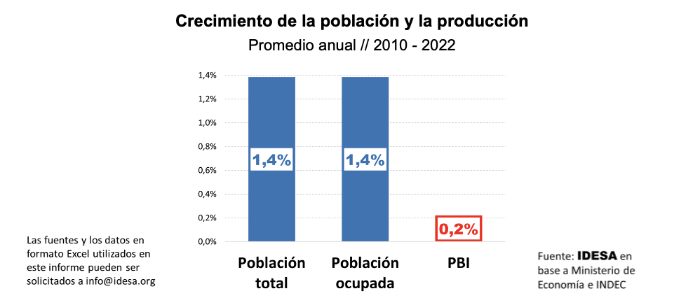 Con la información aportada por el Censo 2022 se puede analizar qué pasó con estas variables que determinan el ingreso por habitante del país. El Instituto de Desarrollo Social Argentino (IDESA) tomó los datos del Censo y del Ministerio de Economía, entre los años 2010 y 2022, y observó que: