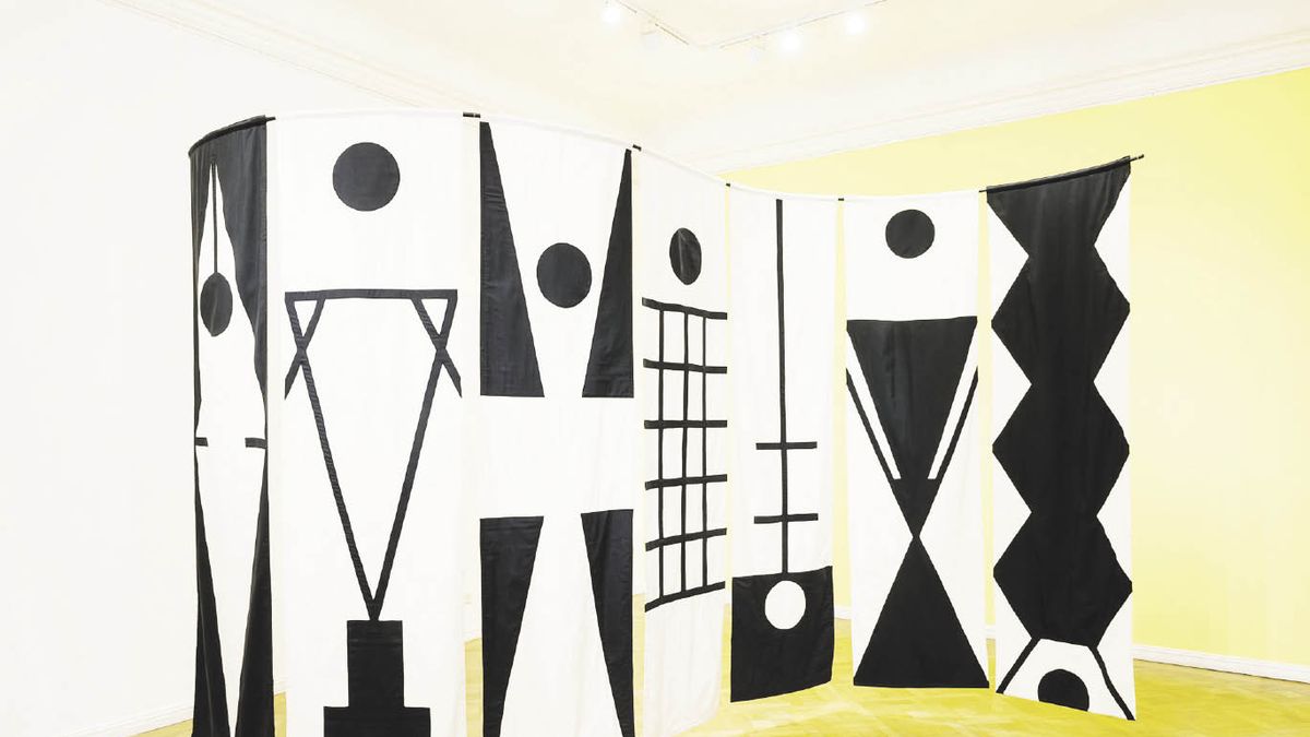 En la sala principal, se impone “Cariátides”, un telón en tela de gran tamaño en forma de S con motivos geométricos que nunca se repiten y que puede recorrerse de ambos lados.