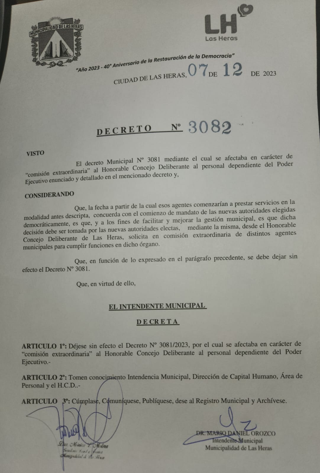 Este lunes, 24 horas después de haberse revelado aquel documento, Orozco firmó un nuevo decreto, el 3082, dejando sin efecto el anterior. A su vez, según pudo saber este medio, no descartó presentarse a la Justicia para denunciar la presunta adulteración de su firma digital.