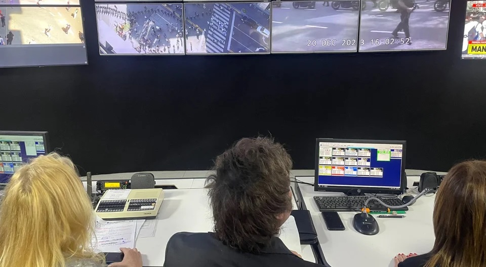 El presidente Javier Milei visitó el Departamento Central de la Policía Federal para monitorear la movilización y el accionar de las fuerzas de seguridad.