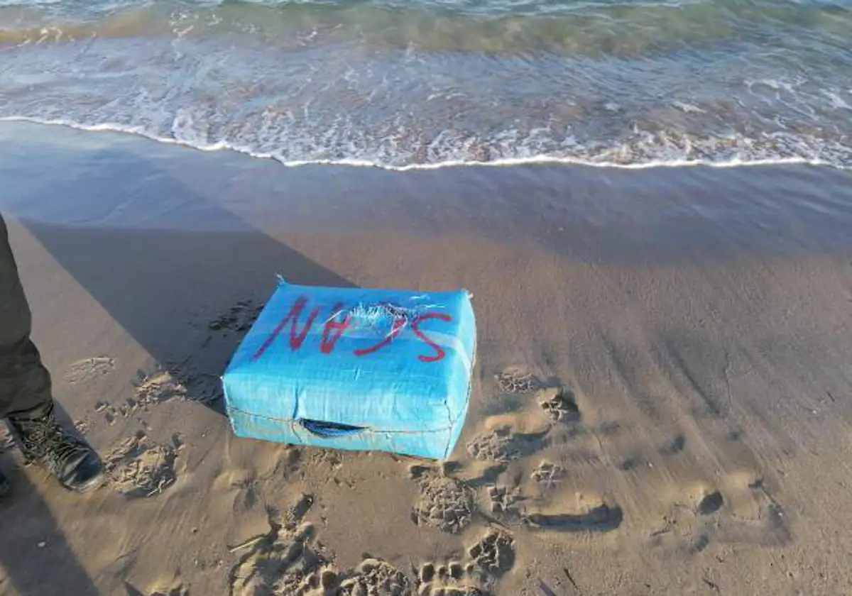Una pareja de aficionados a la pesca, padre e hijo, localizó el pasado miércoles un fardo de droga en la playa de El Campello, junto a la lonja de la localidad alicantina.