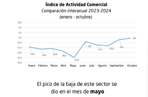 Durante el presente año, la caída más relevante del comercio se registró en mayo y fue del 24,8% en relación al mismo mes de 2023.