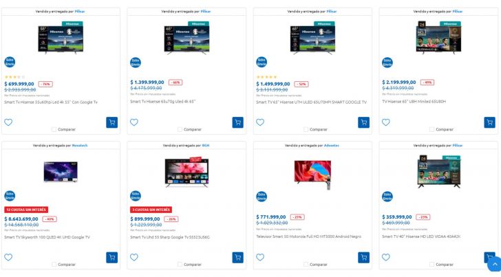 Se trata de la cadena Carrefour, la cual ofrece televisores Smart TV desde $ 200.000 y los descuentos también abarcan para pantallas de hasta 85 pulgadas y con valores de hasta $ 5.000.000. De esta manera, habrá opciones para diferentes presupuestos, pero con rebajas.