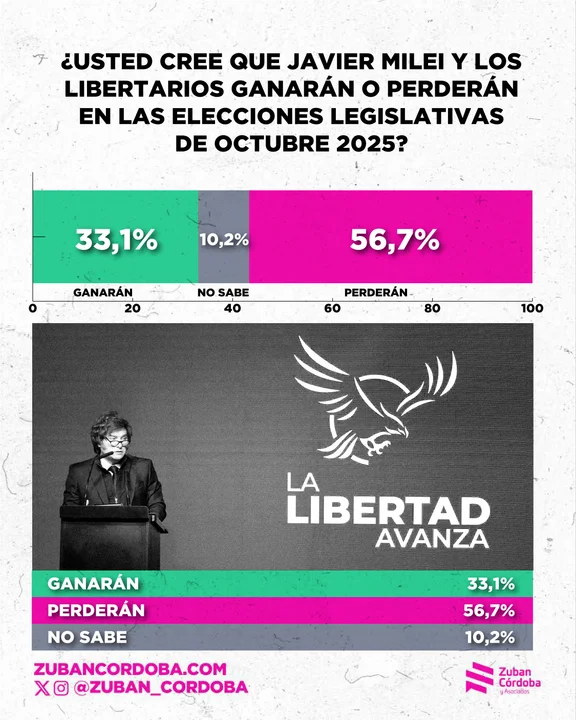 Buenos Aires, 5 de octubre de 2025 – Total News Agency-TNA-Un mes antes de las elecciones legislativas, los últimos datos arrojados por la consultora Zuban Córdoba consolidan un panorama adverso para el oficialismo libertario y señalan una creciente polarización política marcada por el rechazo a la figura de Javier Milei. Según ese estudio, un 62 % de los consultados se siente “muy lejano” a Estados Unidos y a Donald Trump, y un 64 % considera que el reciente acuerdo anunciado tiene valor simbólico más que real.