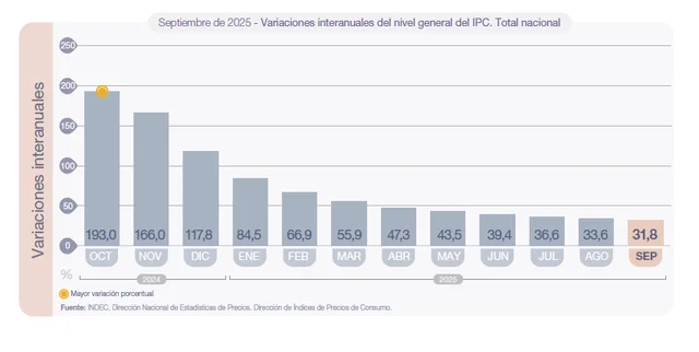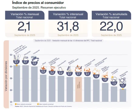 Según el organismo, el Índice de Precios al Consumidor (IPC) acumula un alza del 22% en los primeros nueve meses del año, mientras que la variación interanual alcanza el 31,8%.