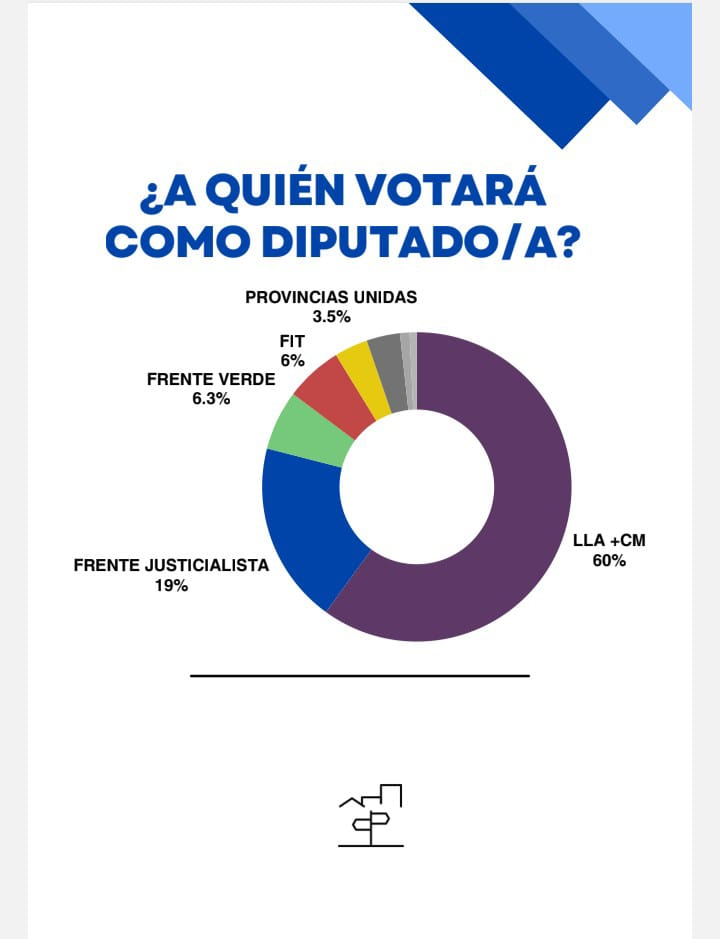 Ante la consulta de “¿A quién votará como diputado/a?”, el 60% se inclinó por La Libertad Avanza + Cambia Mendoza, seguido por el Frente Justicialista con 19%.