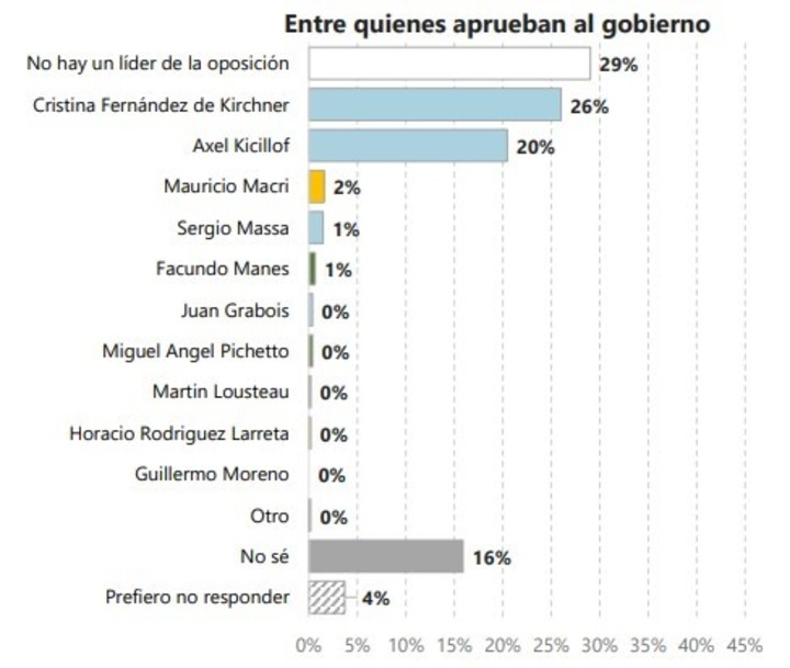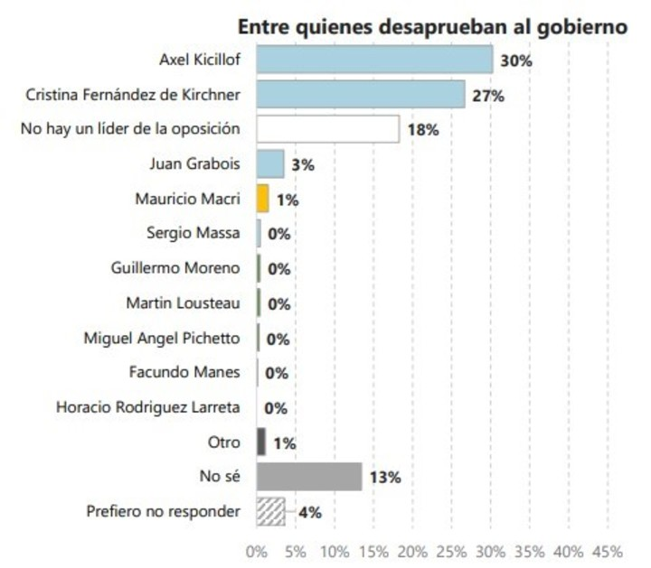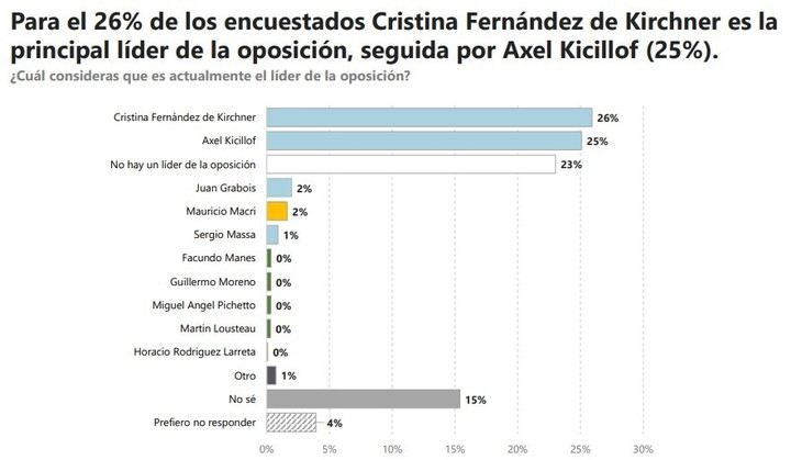 Ante la pregunta central del informe, “¿Quién considerás que es actualmente el líder de la oposición?”, las respuestas revelaron una fragmentación profunda: