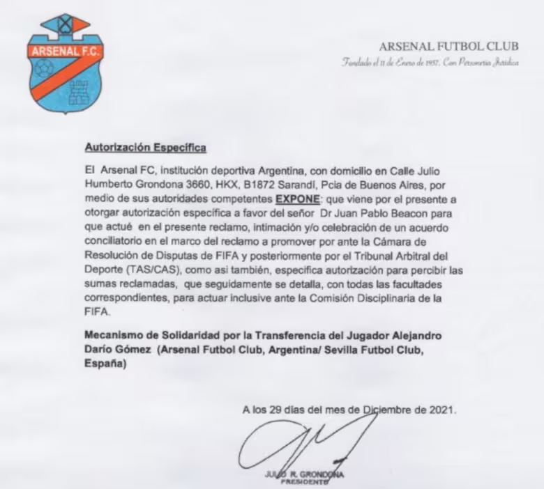Beacon, además, asumió personalmente la representación de Arsenal ante la FIFA y el Tribunal de Arbitraje Deportivo para reclamar fondos del “mecanismo de solidaridad” por transferencias de jugadores formados en el club. Entre los casos gestionados figuran los pases de Alejandro “Papu” Gómez, Darío Benedetto, Iván Marcone y Lisandro López, con cobros que terminaron en manos de la gerenciadora.