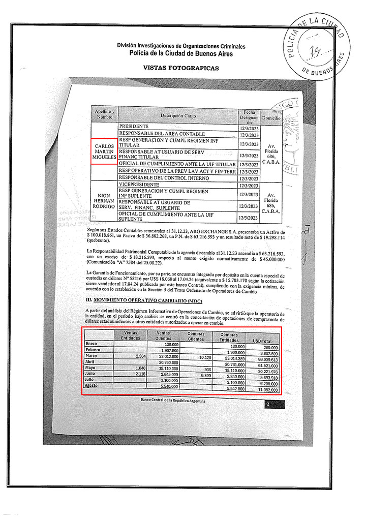Ciudad de Buenos Aires, 1 de febrero de 2026 – Total News Agency-TNA-Una investigación judicial de alto impacto sobre presuntas maniobras ilegales con el dólar oficial durante el período de restricciones cambiarias avanzó de manera significativa tras el hallazgo de documentación sensible en la vivienda de una funcionaria jerárquica del Banco Central de la República Argentina (BCRA). Se trata de un sumario interno vinculado a la casa de cambio ARG EXCHANGE S.A., suspendida en 2024 por irregularidades, en el que figuran como principales responsables los financistas Elías Piccirillo y Martín Migueles, ambos bajo investigación por presuntos negociados cambiarios.