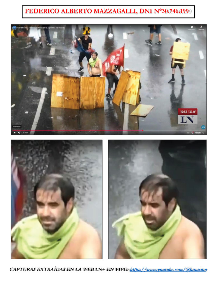 La ministra de Seguridad, Alejandra Monteoliva, comunicó que los identificados fueron Matías Enzo Roldán, Federico Alberto Mazzagalli, Patricio Hernán Castellán y Denis Alejandro Figueredo. Según la exposición oficial, la individualización se concretó mediante cruces de bases de datos y el análisis de imágenes captadas por distintos canales y coberturas periodísticas, que registraron el momento en el que un grupo levantó una suerte de “trinchera” y confeccionó explosivos incendiarios caseros en plena vía pública.