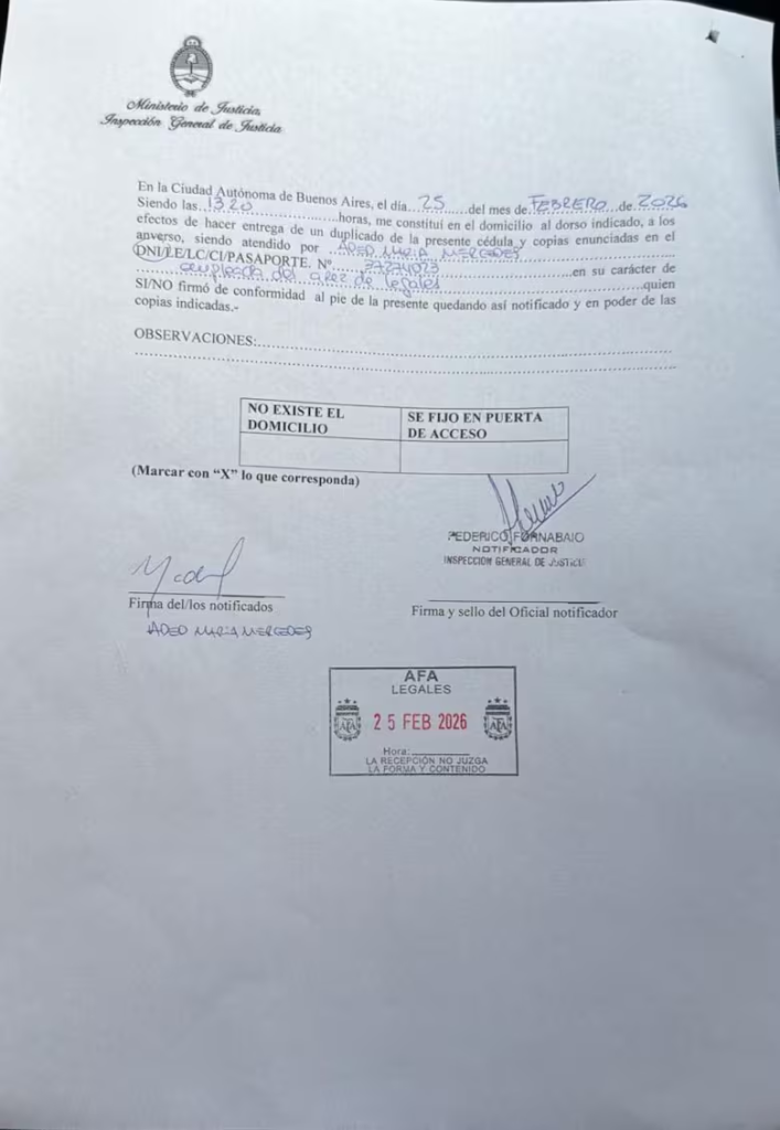En las últimas horas, la IGJ solicitó al Ministerio de Justicia de la Nación la designación de veedores en la AFA “debido a la gravedad de las irregularidades”, según comunicó el propio ministerio. El pedido llegó después de que la entidad incumpliera la presentación de una ampliación documental solicitada por el organismo. El objetivo de los veedores, según lo informado, es revisar estados contables y financieros cerrados al 30 de junio de 2025, acceder a documentación societaria y reconstruir el flujo de fondos y la lógica de decisiones administrativas internas, con especial interés en sociedades y estructuras que estarían vinculadas a operaciones de la entidad.